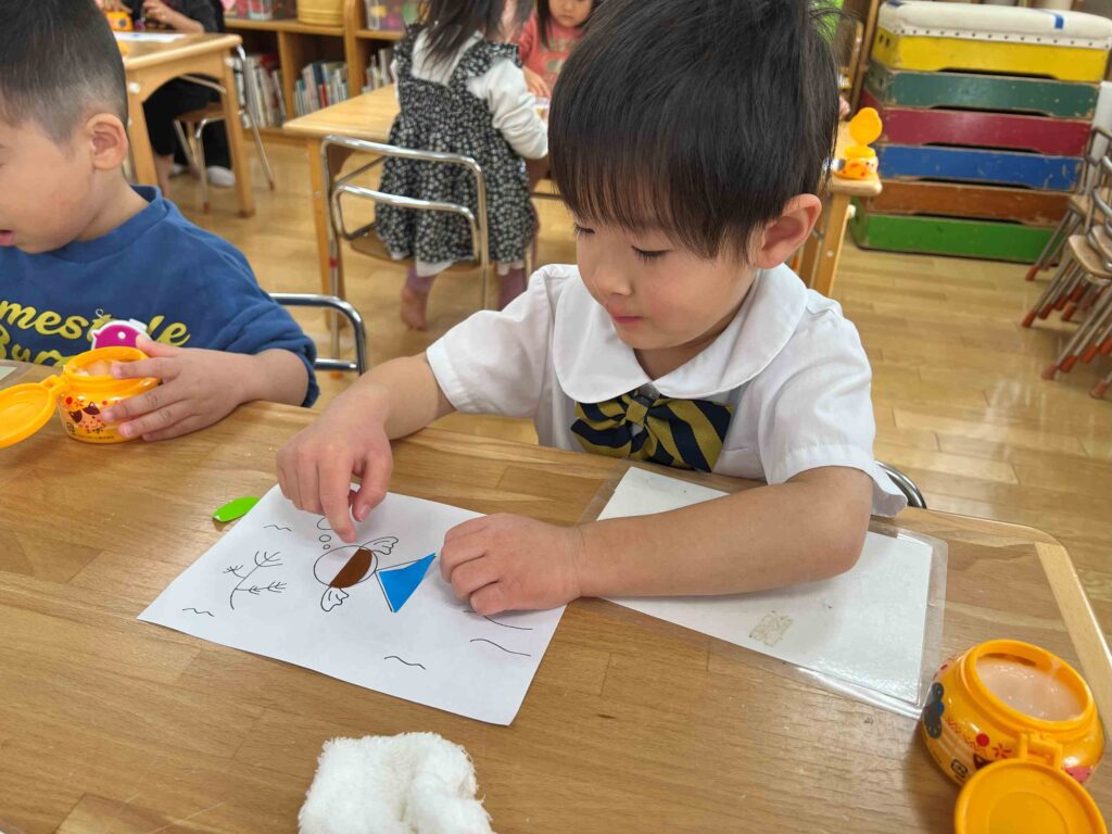 丸や三角形、四角形など様々な形を組み合わせのり貼りを行っています!