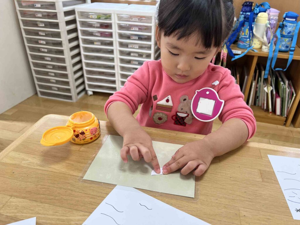 のりの使い方も上手になり、端までしっかりとのりを伸ばし丁寧に貼りあわせることが出来るようになりました🌟