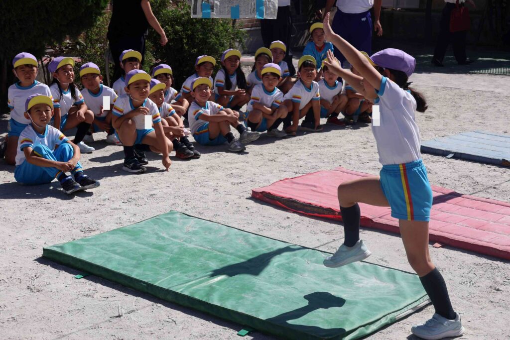 年少の時には鉄棒にぶら下がるのもやっとだった子ども達が今では、側転、逆上がり、壁逆立ちも出来るようになりました。