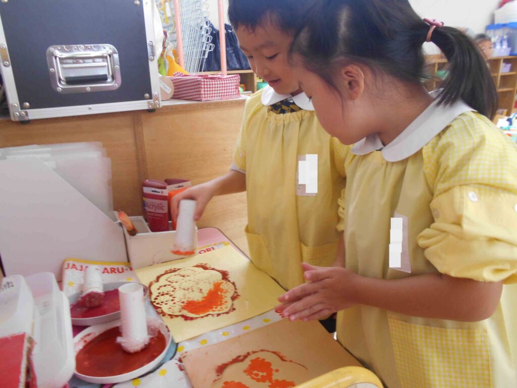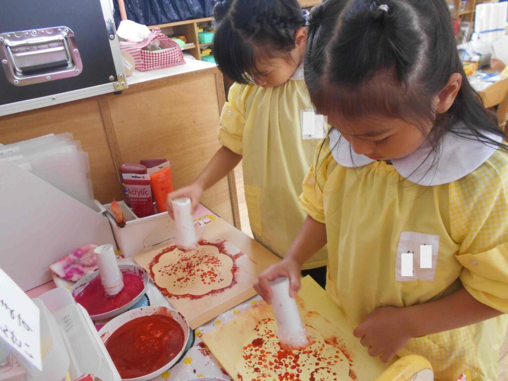 今日の年長組はプチプチスタンプを使用して製作をしました ♪