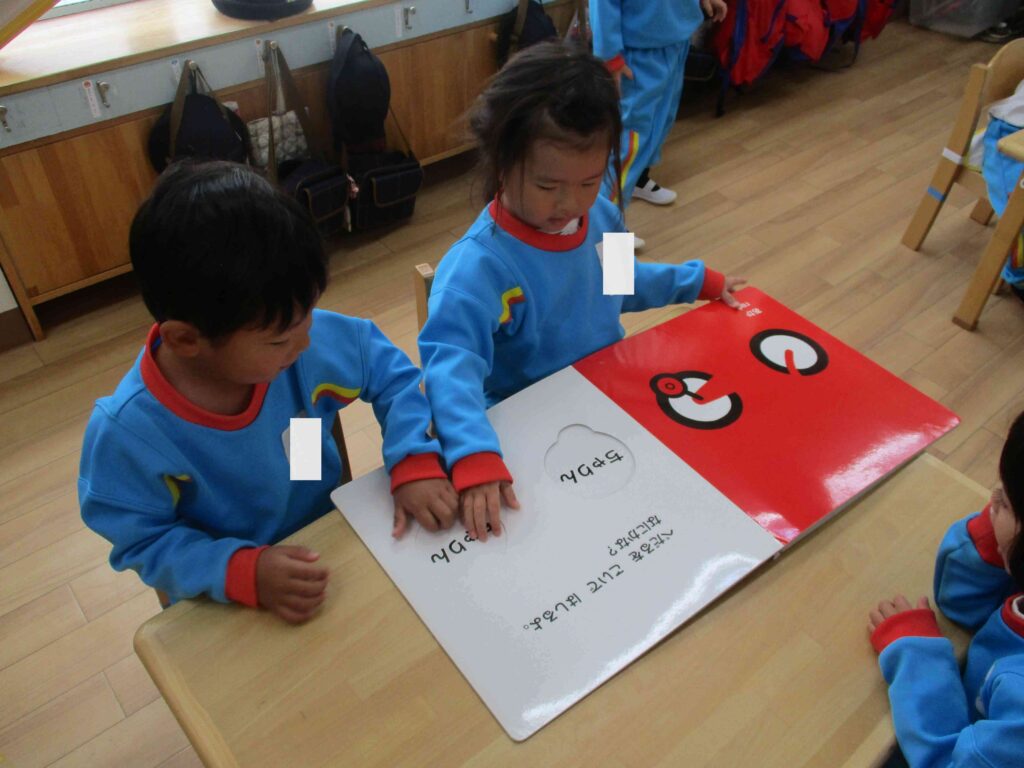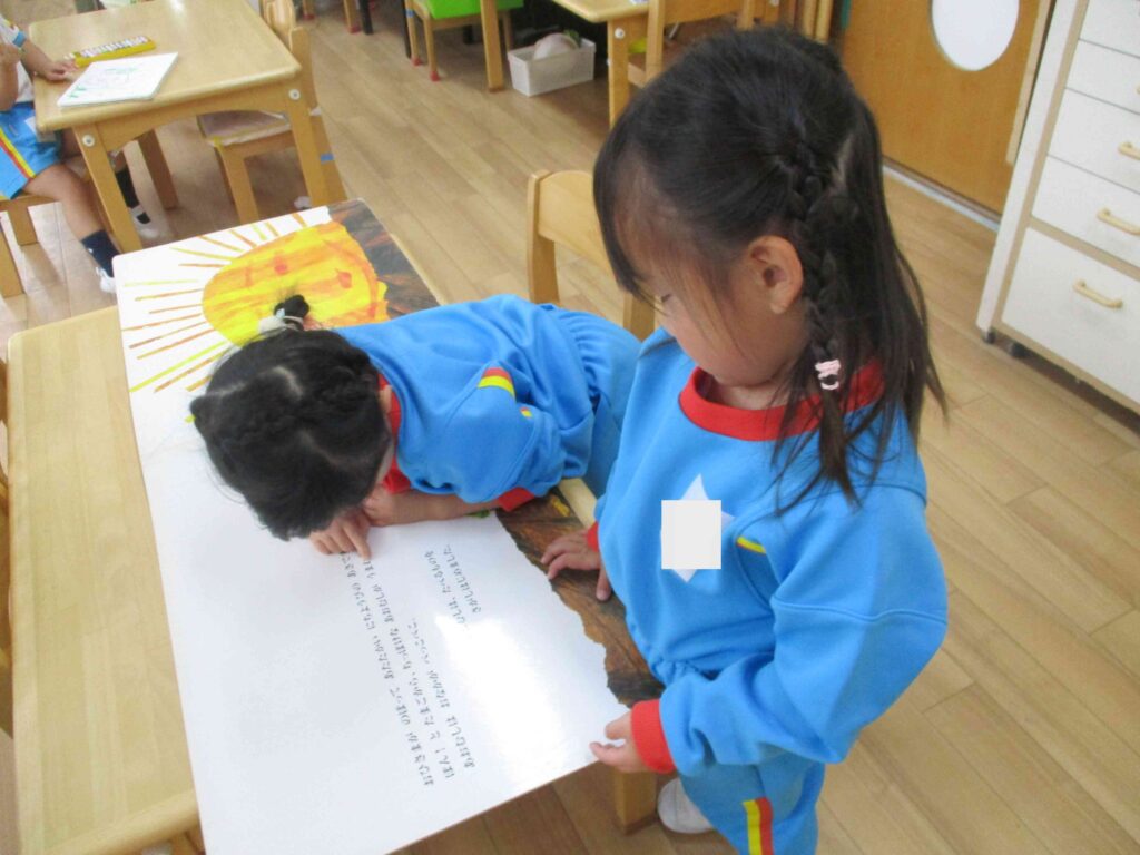 先生に読み聞かせしてもらっていた絵本も、文字が読めるようになり自分たちで読んでいます🎵