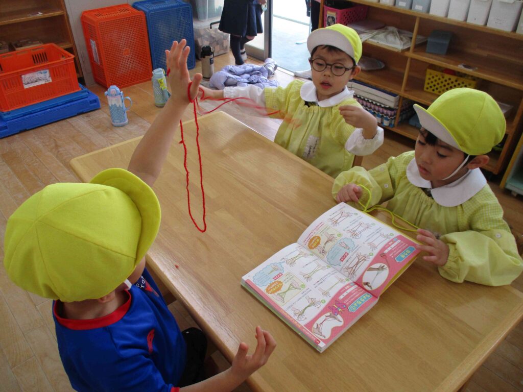 あやとりの本を見ている子、友達に教えてもらう子など様々です(^^)