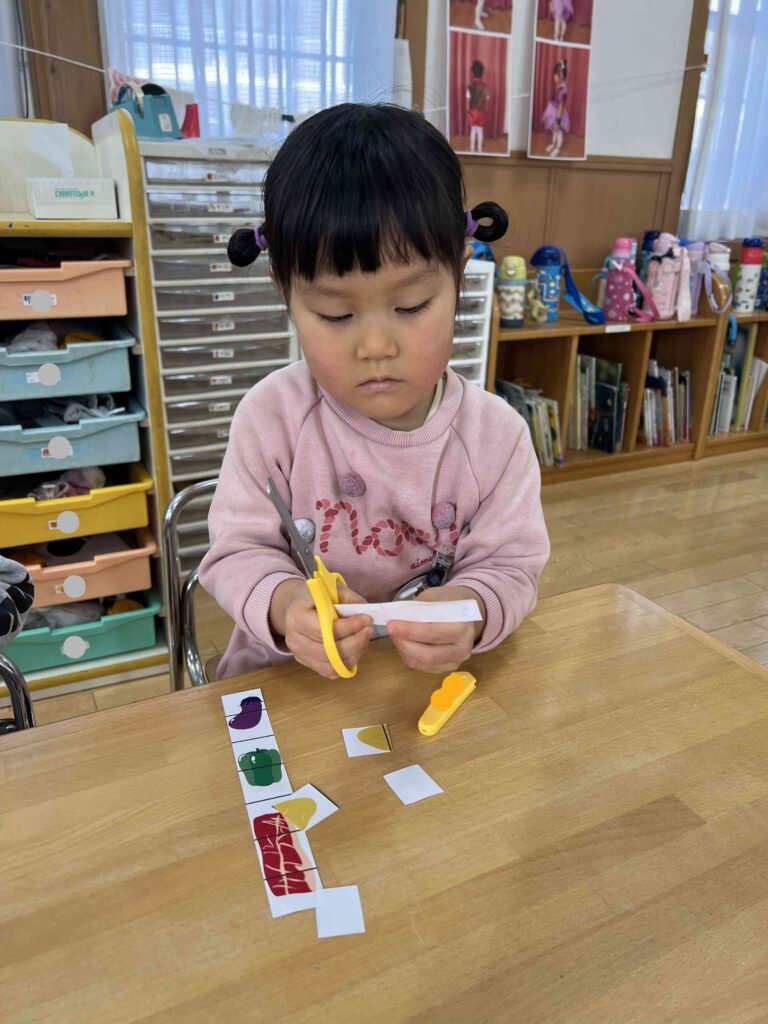 練習を重ねるたび、ハサミの持ち方・使い方が上手になり、綺麗に切ることができました🌟