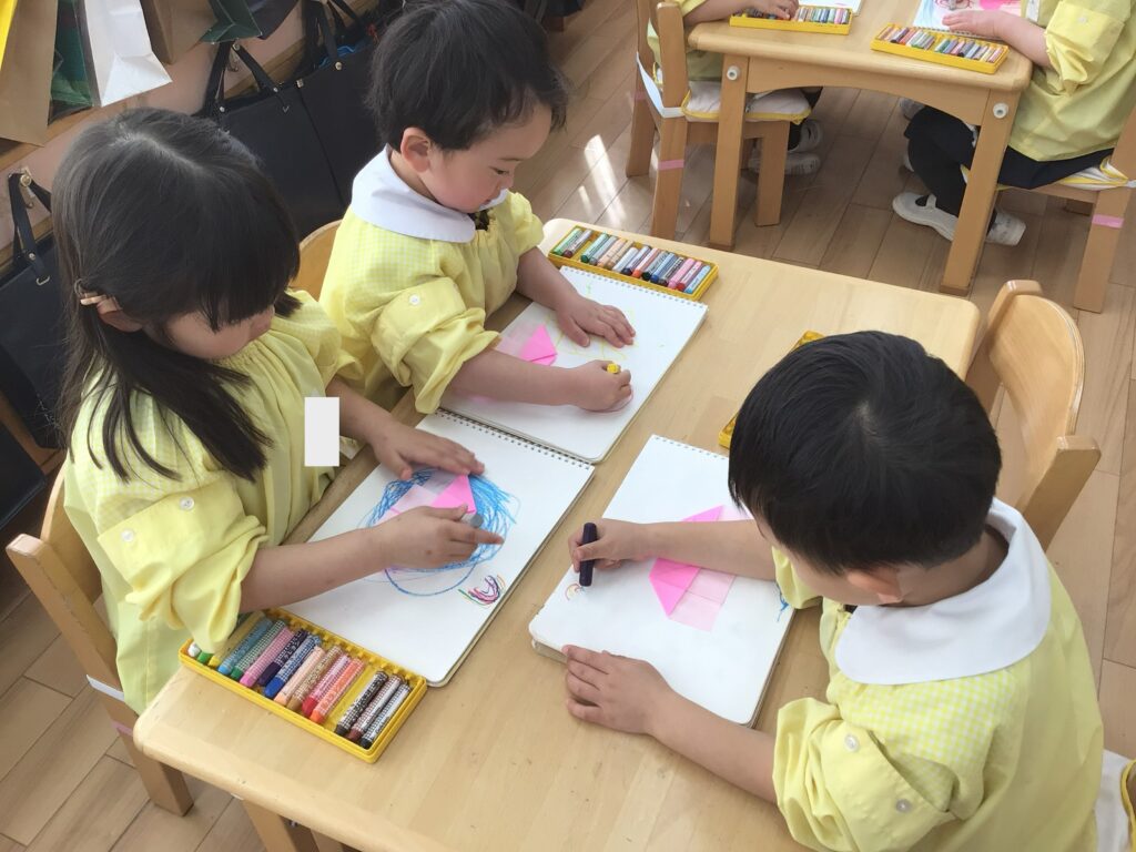初めはぐちゃぐちゃになってしまっていた折り紙も、今では角と角を合わせて丁寧に折ることが出来るようになりました😊
